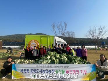 ▲ 사진=대전광역시대전시는 15일 유성구 복용동 공영도시농업농장에서 수확한 김장용 무, 배추를 대전광역푸드뱅크를 통해 지역의 어려운 이웃들에게 전달했다.