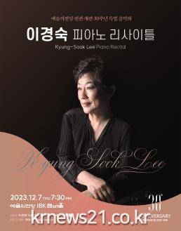 예술의전당 전관 개관 30주년을 기념하여 한국 음악사의 거장 이경숙의 피아노 리사이틀이 열린다.