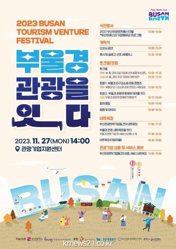 ▲ 사진=부산광역시부산시(시장 박형준)는 오는 11월 27일 오후 2시 부산관광기업지원센터(영도구 소재)에서 「2023 부산관광벤처 페스티벌」을 개최한다고 밝혔다.