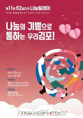 “나눔의 기쁨으로 통하는 우리 김포”라는 주제로 12월 1일 진행되는 62일간의 나눔릴레이 기념식에는 나눔릴레이 개막과 함께 나눔문화 확산에 기여한 기부자들에 대한 나눔유공 표창과 공로패 수여, 기탁식이 진행되며 나눔의 기쁨 성과영상을 상영해 62일 동안 시민 중심의 나눔문화 확산을 위한 캠페인이 실시될 예정이다.
