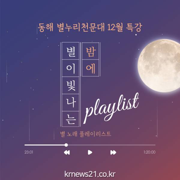 ▲ 사진=강원도 동해시동해시(시장 심규언)는 별누리천문대(청소년수련관)에서 ‘Playlist-별이 빛나는 밤에’를 주제로 한 천문학 특강을 진행한다고 밝혔다.