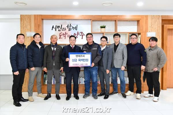 유영권 회장은 “추운 날씨 이겨내고 계신 양주시 이웃들이 건강하게 지내시기를 바라는 마음으로 회원들이 십시일반 모은 성금을 양주시에 기부할 수 있어 기쁘다”며 “엔에프씨는 앞으로도 꾸준한 기부와 활동을 이어갈 수 있도록 더욱 노력하겠다”고 말했다.