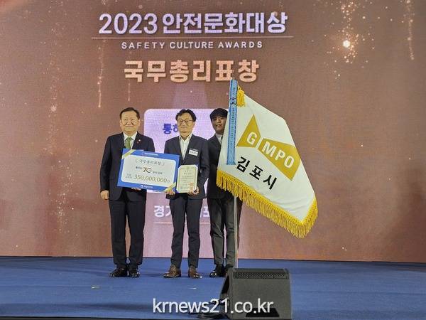 김포시가 올해 기초자치단체 중 유일하게 국무총리 정부 포상을 수상하는 쾌거를 거뒀다. 김포시는 행정안전부에서 실시한 2023년 안전문화대상에 공모해 안전담당관을 필두로 시행한 김포시의 안전문화 정책에서 11일 국무총리 정부 포상을 수상했다.