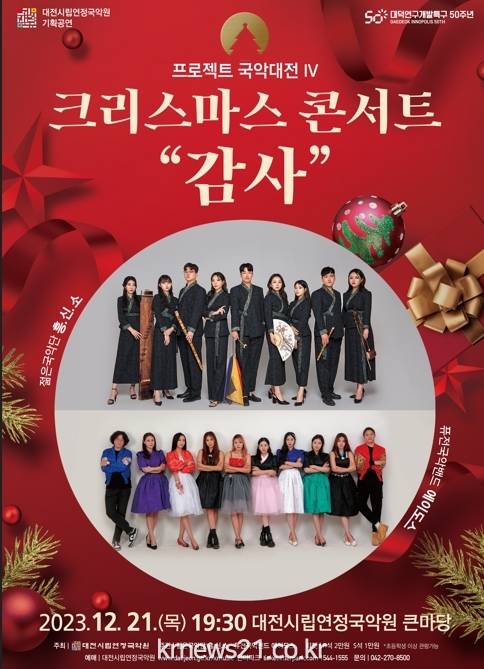 ▲ 사진=대전광역시대전시립연정국악원은 21일 저녁 7시 30분 국악원 큰마당에서 지역 예술인 초청 기획공연 ‘프로젝트 국악대전’의 2023년 마지막 무대 <크리스마스 콘서트‘감사(感謝)’>를 개최한다.