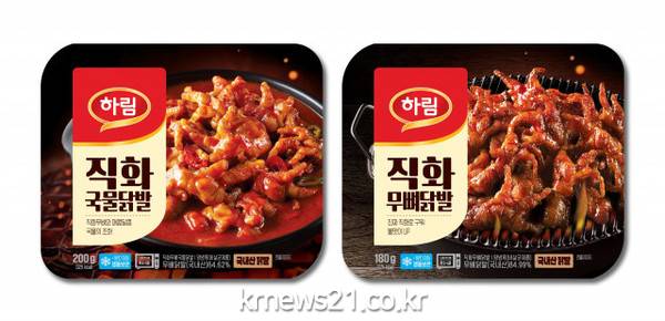 하림의 직화 무뼈 닭발 2종은 신선한 100% 국내산 닭발을 먹기 편하도록 뼈를 발라낸 뒤 매콤한 특제 소스로 양념했다. 특히 직화로 구워 화끈한 불맛이 특징이다. 따로 손질하거나 양념할 필요 없이 용기째로 전자레인지에 약 4분간 돌리면 포차에서 맛볼법한 닭발을 집에서 쉽고 간편하게 즐길 수 있다.