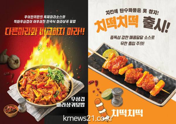 또한 꾸이한끼는 새로운 사이드메뉴 ‘치떡치떡’도 함께 출시한다. 휴게소 간식에서 시작해 이제는 모르는 사람이 없을 정도로 인기가 있는 ‘소떡소떡’에서 모티브를 따왔다. 하지만 소떡소떡과는 달리 소시지 대신 직접 튀긴 순살후라이드치킨, 떡은 일반 떡보다 더 쫄깃한 츄러스떡, 그리고 꾸이한끼 전용 특제양념소스를 사용하는 등 확실한 차별성으로 메뉴 경쟁력을 갖췄다.