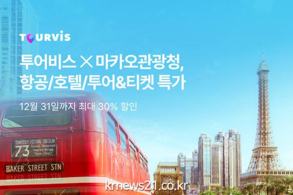 ▲ 사진=타이드스퀘어타이드스퀘어가 운영하는 온라인 여행 플랫폼 투어비스가 마카오관광청과 제휴해 ‘함께하면 더 즐거운 마카오 여행’ 이벤트를 진행한다. 투어비스는 연말연시 이색적인 단거리 해외여행을 고민하는 사람을 위해 마카오를 선정하고, 이번 이벤트를 통해 12월 31일까지 추천 명소부터 항공·호텔·투어&티켓 할인 등의 특전을 제공한다.