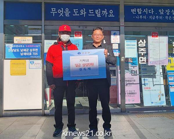 상주면 산불감시원 권득제 씨가 지난 2일 상주행정복지센터를 방문해 이웃돕기 성금 30만 원을 기탁했다.