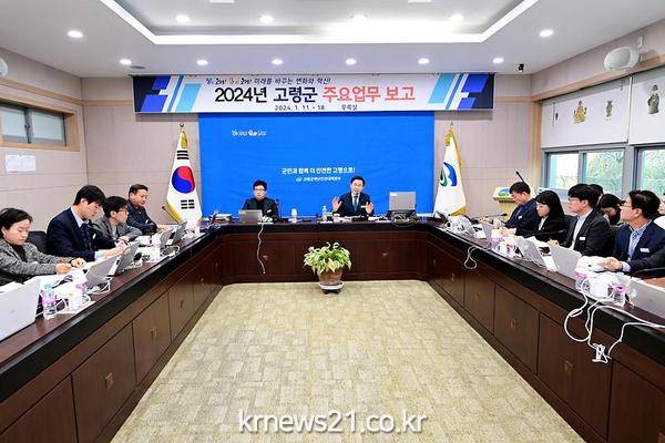 고령군(군수 이남철)은 지난 1월 11일부터 18일까지 6일간 군청 우륵실에서 각 부서장 및 팀장이 참석한 가운데 ‘세계유산 도시! 새로운 도약!’『2024년 주요업무 보고회』를 개최하였다.