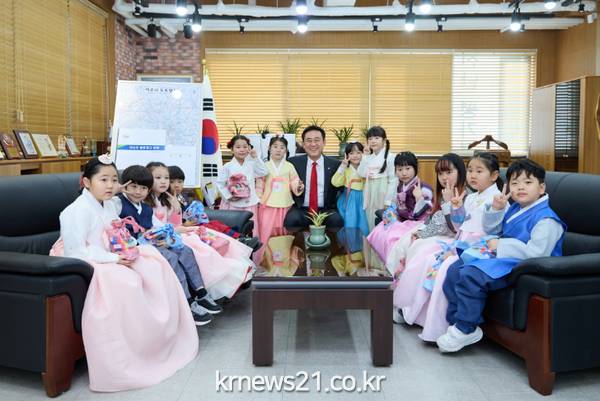 ▲ 사진=여주시다함께돌봄센터경기도 여주시(시장 이충우)에서는 지난 2월 2일 시장실에서 다함께돌봄센터 1호점(센터장 신연철), 2호점(센터장 우경희), 오학점(센터장 김혜련), LH점(센터장 이미현), 교동점(센터장 이주원)의 이용아동 12명이 참석한 가운데 설 명절을 맞아 새해 인사를 나눴다.