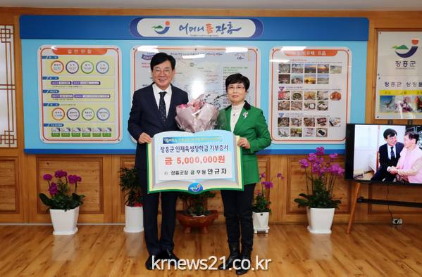 안규자 전 관산읍장은 “장흥지역에서 나고 자라 직장생활은 물론 3대가 장흥 초·중·고를 졸업했고, 지역의 후배들의 진로에 조금이나마 도움이 되고자 기탁하게 되었다”고 밝혔다.