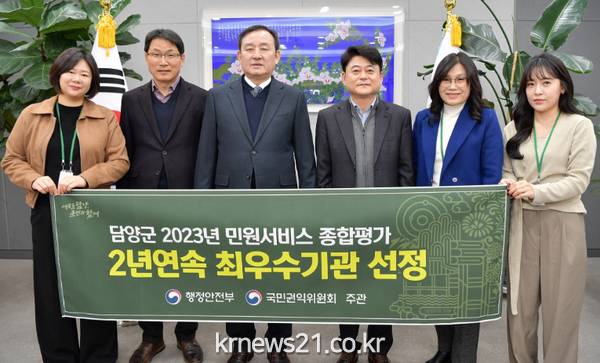 ▲ 사진=담양군청담양군은 행정안전부와 국민권익위원회가 합동으로 실시하는 2023년 민원서비스 종합평가에서 최우수 등급으로 2년 연속 행정안전부 장관 표창을 받았다.