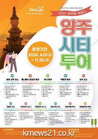 ▲ 사진=양주시양주시(시장 강수현)는 오는 4월 1일부터 주요 관광지를 잇는 양주 시티투어버스 ‘양주에 취하다’를 첫 운행 한다고 20일 밝혔다.