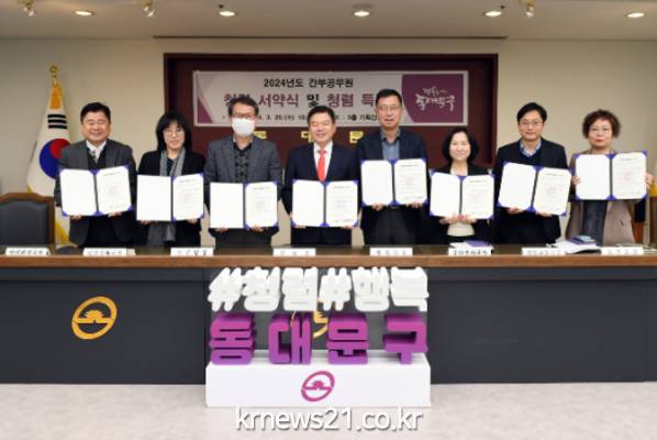 한편, 동대문구는 지난 14일 화이트데이를 맞아 소통하는 조직문화를 조성하고 깨끗한 동대문구를 만들어 나가자는 의미로 ‘화이트-청렴Day’ 행사를 개최하였으며, 앞으로도 다양한 청렴 시책을 추진할 예정이라고 밝혔다.