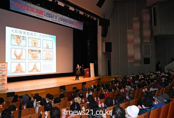대전 중구(구청장 권한대행 김영빈)는 20일 대전평생학습관에서 중구 시니어클럽 회원 300여 명을 대상으로 치매예방교육을 실시했다고 밝혔다.