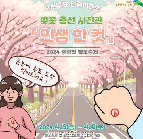 이 캠페인은 오는 5일과 6일 양일간 불광천 일대의 ‘벚꽃 총선 사진관-인생한컷’ 부스에서 진행된다. 축제 기간 사전투표를 마친 주민들을 대상으로 벚꽃 포토존에서 촬영한 사진을 파일로 제공한다.