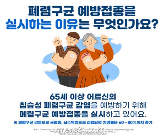 접종대상은 65세 이상(1959. 12. 31. 이전 출생) 중 ▲65세 이후 접종하지 않은 자 ▲65세 이전 백신 접종 후 5년이 경과한 자이다.