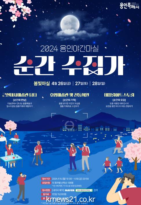 ▲ 사진=용인특례시용인특례시(시장 이상일)는 오는 15일부터 19일까지 지역의 야간 명소를 즐길 수 있는 ‘용인 봄빛 야간 마실’ 참가자를 모집한다고 12일 밝혔다.
