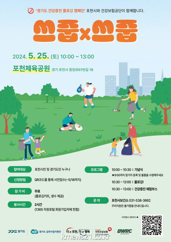 포천시(시장 백영현) 보건소는 올해 세계 금연의 날을 맞이해 오는 25일 오전 10시부터 포천체육공원에서 「건강증진 플로깅 캠페인 쓰줍쓰줍」을 진행한다.
