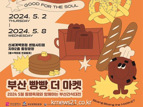 부산시(시장 박형준)는 내일(2일)부터 8일까지 7일간 신세계백화점 센텀시티점 지하 2층 중앙광장(백화점↔몰 연결통로)에서 2024년 동행축제와 함께하는 부산간식대전 '부산빵빵더마켓'을 개최한다고 밝혔다.