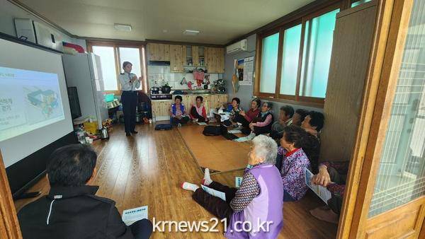 이날 교육은 남해경찰서와 연계하여 고령운전자 및 보행자의 교통사고를 예방하기 위해 직접 경로당을 찾아가 어르신을 대상으로 진행되었다.