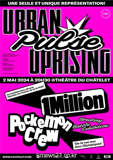 먼저 5월 2일, 파리 샤틀레 극장에서 한국과 프랑스 브레이킹 합동 공연 <</span>어번 펄스 업라이징(Urban Pulse Uprising)>으로 ‘2024 코리아시즌’ 개막을 알린다. ‘파리올림픽’이 브레이킹을 정식 종목으로 채택한 것을 계기로, 한국의 댄서이자 안무가 리아킴이 이끄는 원밀리언(1MILLION)과 프랑스의 포케몬 크루(Pockemon Crew)가 경연(배틀) 형식의 공연을 펼친다.