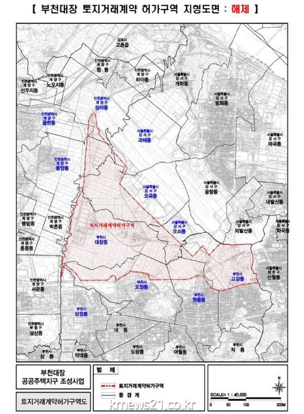 이번에 해제되는 구역은 부천대장 공공주택지구인 고강동, 대장동, 오정동, 원종동, 삼정동 일원이다. 이로써 부천시 전역이 토지거래허가구역에서 풀리게 됐다.