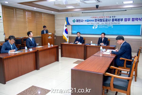 제천시와 한국철도공사 충북본부는 상호협력을 통해 지역경제 및 철도관광 활성화, 지방소멸위기 대응과 같은 지역의 현안들을 함께 해결하고자 5월 2일 제천시청에서 업무협약을 체결했다.