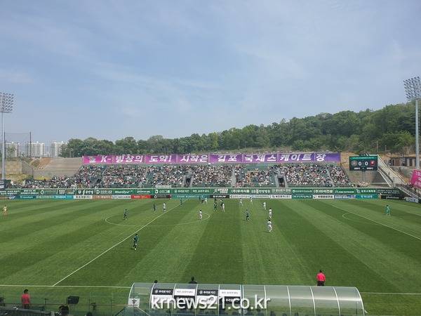 대한체육회의 태릉국제스케이트장 대체부지 선정 공모와 관련해 김포시(시장 김병수)의 유치 활동이 활발히 이뤄지고 있는 가운데 김포시의 자랑인 김포FC에서도 유치 열망이 울려퍼졌다.