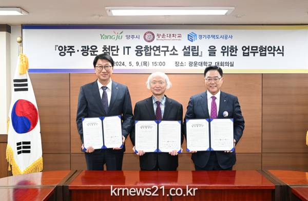 양주시(시장 강수현)는 9일 광운대학교(총장 천장호), 경기주택도시공사(사장 김세용)와 양주테크노밸리 활성화를 위한 ‘양주·광운 첨단IT융합연구소(가칭) 설립 양해각서(MOU)’를 체결했다.