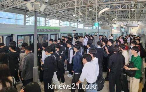 용인특례시(시장 이상일)는 용인경전철이 올 1월 누적 승객 1억명을 돌파한 데 이어 지난 4월 하루 평균 승객 수 4만명을 넘어 개통 이래 최고치를 기록했다고 12일 밝혔다.