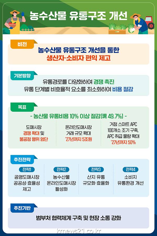 송미령 농식품부 장관은 온라인 도매시장 활성화를 위해 통합물류센터를 확충하고 판매자에게 물류비의 50%를 지원하는 한편 안전성 관리를 강화하는 등 체계를 잡아가겠다고 설명했다.