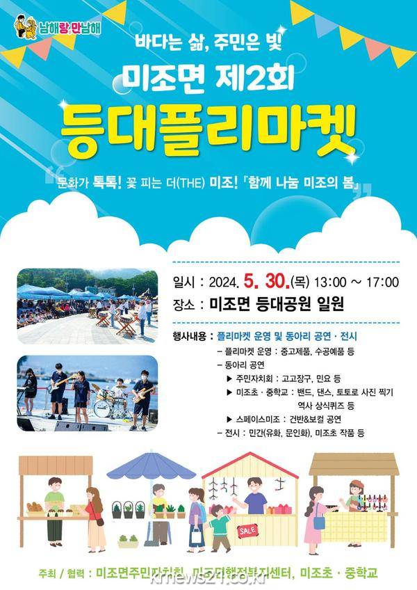 ‘함께 나눔 미조의 봄’이라는 주제로 개최되는 이번 플리마켓에는 지역 주민과 미조초등학교 및 미조중학교 학생들이 참여한다. 이들은 △중고·수제물품 판매부스 운영 △역사 상식퀴즈·사진찍기 부스 운영, △동아리 공연, △미술작품 전시를 통해 다양한 볼거리와 즐길 거리를 제공할 예정이다.