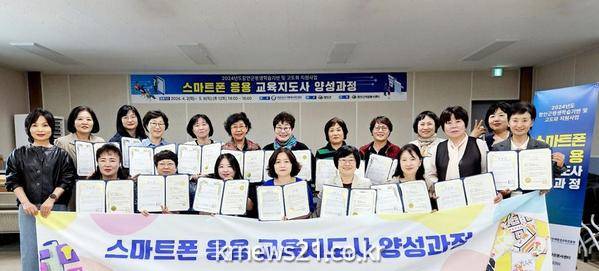 센터에서는 2024 함안군 평생학습 기반 및 고도화 지원사업의 일환으로 ‘스마트폰 응용 교육지도사 양성과정’ 교육을 실시했으며, 교육생들은 지난 4월 2일부터 5월 9일까지 총 12회 24시간 강의를 수료하고 스마트폰 응용 교육지도사 자격증을 취득했다.