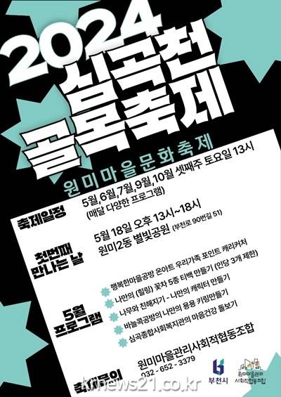 신상현 이사장은 “지난 2018년부터 마을공동체가 지역주민에게 다양한 경험을 제공하고자 시작했던 원미마을 문화축제가 심곡천 골목축제로 성장하게 되어 뜻깊다. 주민들의 큰 호응을 기대한다”고 전했다.