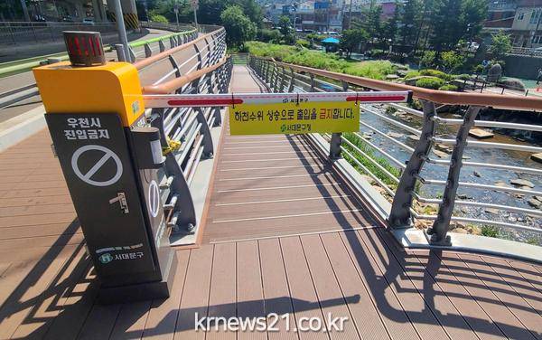 서대문구가 여름철 돌발성 폭우로 인한 하천 고립사고를 예방하기 위해 6월 초까지 관내 홍제천 변에 5개, 불광천 변에 3개의 ‘진출입로 원격차단시설’을 설치한다.