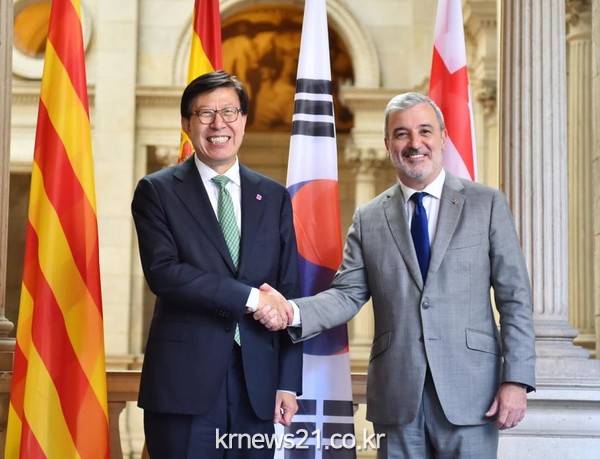 부산시(시장 박형준)는 현지시각으로 어제(21일) 오후 5시 15분 스페인 바르셀로나 시청사에서 스페인 최대 항만도시이자, 세계적인 관광․마이스 도시 바르셀로나시(市)와 「부산-바르셀로나 자매도시 관계강화 공동선언」을 체결했다고 밝혔다.