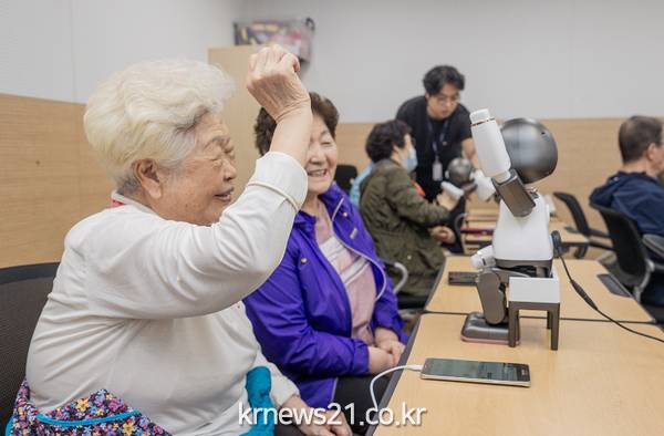 어르신 대상 교육은 복지관, 경로당 등에 파견된 전문 강사가 로봇 ‘리쿠’를 활용해 스마트폰 사용법(길 찾기, 배달 앱 이용 등) 교육과 인지능력 향상 게임을 진행하며, 총 3회 과정으로 수강료는 무료다.