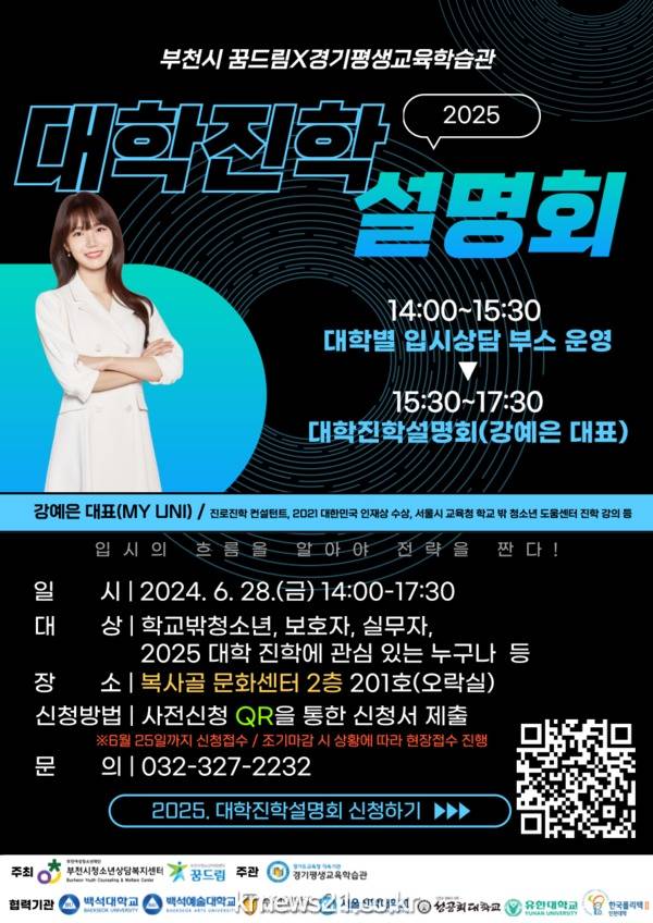 부천시(시장 조용익)는 오는 6월 28일(금) 복사골문화센터 2층에서 학교 밖 청소년을 위한 2025년도 대학진학 설명회를 개최할 예정이다.
