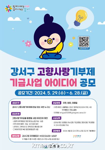 공모 기간은 6월 28일까지이며, 강서구 고향사랑기부제에 관심 있는 사람이면 지역 상관없이 누구나 참여 가능하다.