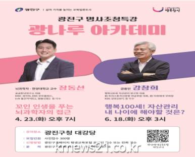 광나루아카데미는 이달 18일 오후 3시부터 90분간 진행된다. 광진구 누리집과 전화로 사전접수를 통해 구민 300명을 모집하며, 당일 현장 참여도 가능하다.