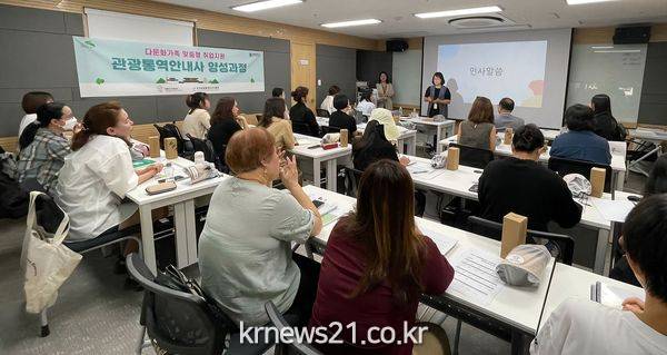 은평구(구청장 김미경)는 지난 4일부터 오는 8월 13일까지 결혼이민자 관광통역안내사 양성과정 교육을 은평구가족센터에서 진행한다고 밝혔다.
