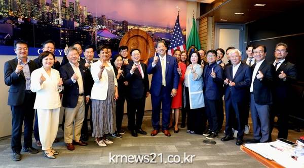 이장우 대전시장은 출장 3일 차인 25일(현지시각) 자매도시 35주년 기념식과 경제사절단 교류를 위해 미국 시애틀 시청을 방문했다.