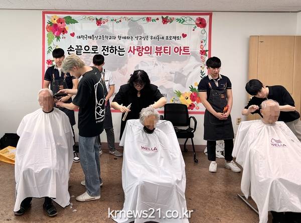 대전 중구 문화1동(동장 장성임)은 지난 3일 대전국제통상고등학교(교장 임재범) 뷰티아트과 재학생과 졸업생으로 구성된 봉사단(헤어아뜰리에)이 관내 홀로 사는 어르신을 위한 자원봉사 활동을 펼쳤다고 밝혔다.