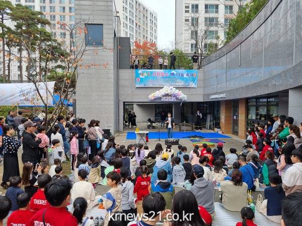 지난해 용인특례시의 층간소음 없는 이웃사이 만들기 사업에 참여한 힐스테이트서천 입주민들이 정나눔 축제를 즐기고 있다.