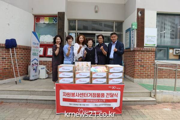 김포시자원봉사센터(센터장 신현실)는 지난 12일 양지마을 관리소에서 노인회장, 이장, 거점 활동가, 양지마을관리소장 등이 참석한 가운데 어르신들을 위한 자원봉사센터거점 물품 전달식을 가졌다.