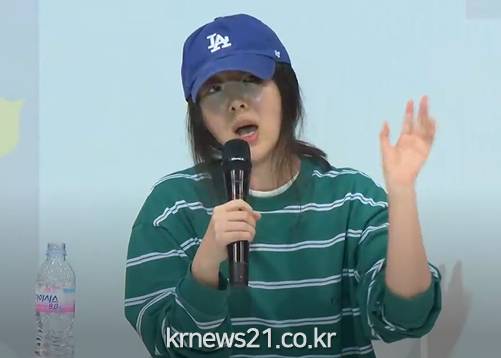 지난 4월 기자회견에서 하이브의 또 다른 레이블 쏘스뮤직과, 소속 가수 르세라핌을 여러 차례 언급한 민희진 씨.