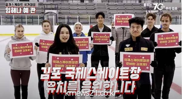 시는 지난 10일 피겨 아이댄스 국가대표인 임해나 선수와 그 파트너인 예콴 선수가 국제스케이트장 김포 유치 응원을 전달했으며, 이 영상을 김포시 공식 유튜브에 게시했다고 밝혔다.