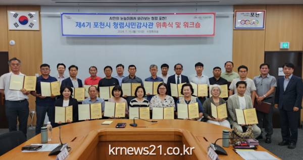 포천시(시장 백영현)는 지난 15일 포천시청 신관 2층 시정회의실에서 제4기 청렴시민감사관 위촉식 및 워크숍을 성황리에 개최했다.