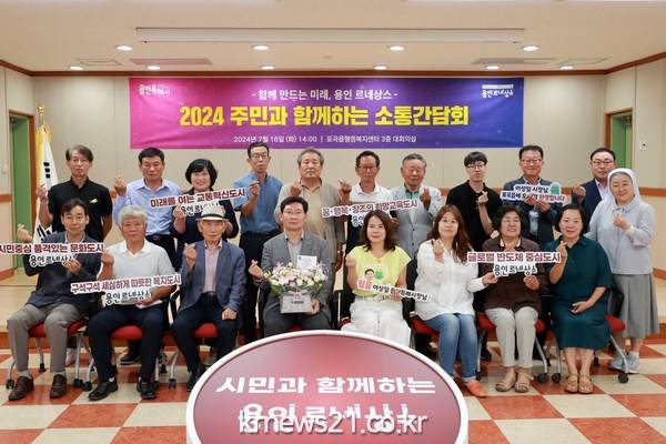 이 시장은 “시장 취임 후 2년간 용인의 변화와 발전을 위해 많은 일을 했고, 선거 때 공약하지 않았던 큰 일도 하고 난제도 많이 풀었지만, 시민들께서 불편을 느끼는 지역 현안들도 많이 있을 것이므로 말씀 듣고 지혜를 모아 해법을 모색하겠다는 생각으로 자리를 마련했다”고 말했다.